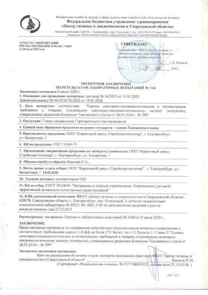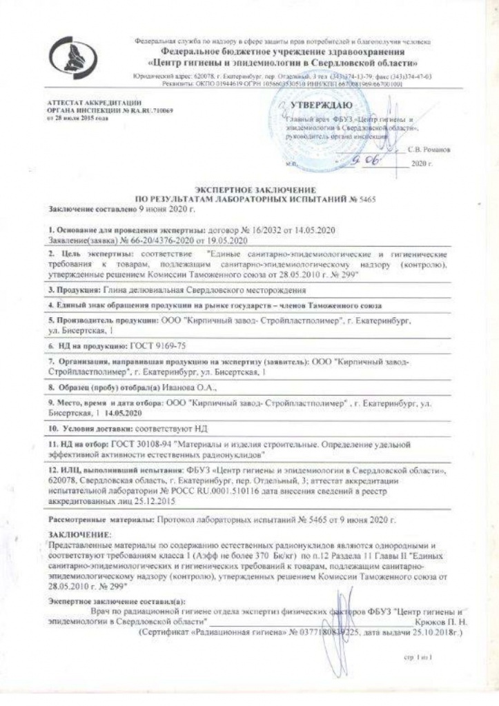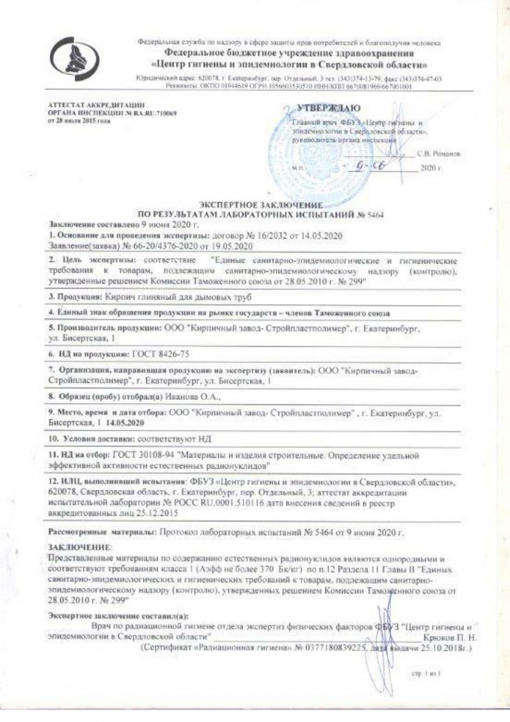 Протокол лабораторных испытаний и заключение - Кирпич глиняный для дымовых труб