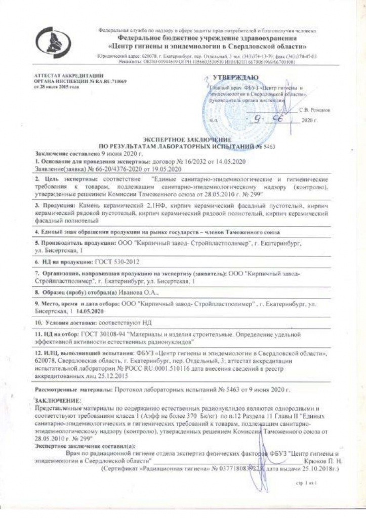 Протокол лабораторных испытаний и заключение - Камень и кирпич керамический