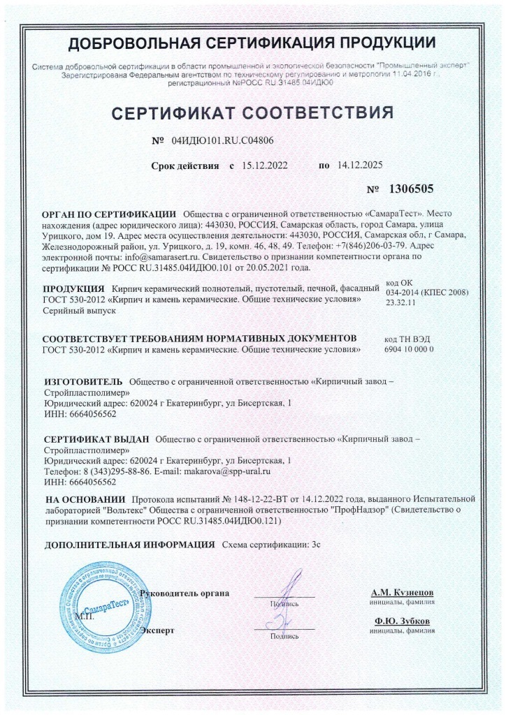 Вся продукция КЗ СПП выпускается в соответствии с ГОСТ 530-2012. Для производства используем только натуральное природное сырьё - отборную глину.
